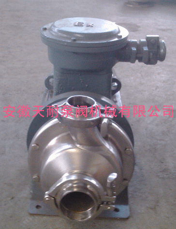 用途:該泵適用于輸送各類酒、汽水、牛奶、醬油、食醋植物油、醫(yī)藥、化工、助劑、染料、紡織、造紙等液體物料。被輸送介質(zhì)溫度不得超過80℃,流量Q=1—80m3/h.揚(yáng)程H=8—40米并能與過濾機(jī)配套使用。廣泛用于制藥、飲料、食品、油脂、乳品、日化、釀造、環(huán)保、水處理等行業(yè)。 特點(diǎn):該泵另部件采用1cr18Ni9Ti優(yōu)質(zhì)不銹鋼材料制造,泵體與電機(jī)聯(lián)成整體,采用機(jī)械密封裝置,并有不銹鋼防護(hù)罩,具有結(jié)構(gòu)簡(jiǎn)單、外形美觀、體積輕巧、耐腐蝕、操作方便、無需安裝基礎(chǔ),便于手提。